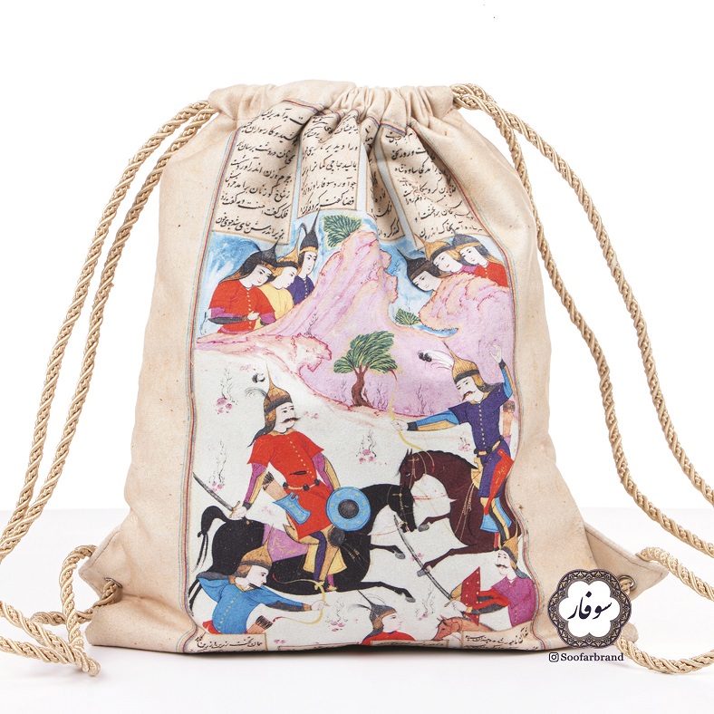 کوله پشتی های سوفار این کوله ها بسیار سبک و کاربردی و دارای آستر و یک جیب کوچک داخل کوله می باشد. طرح دو روی کوله متفاوت و برگرفته از شاهنامه است. این کوله ها به راحی قابل شستشو است.