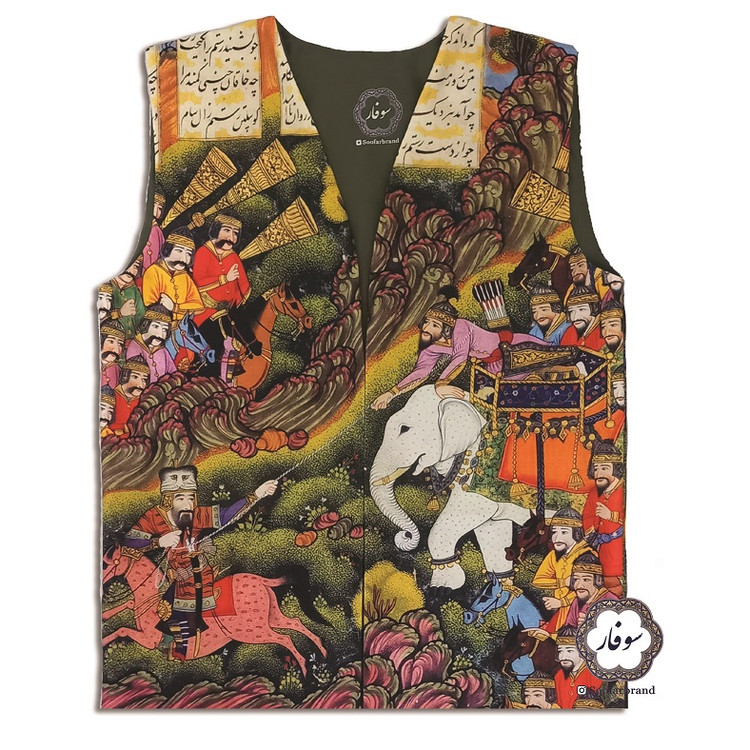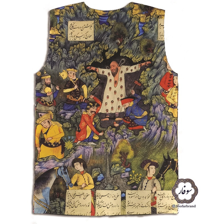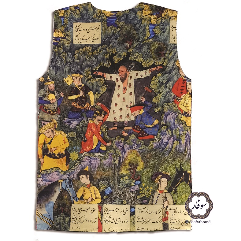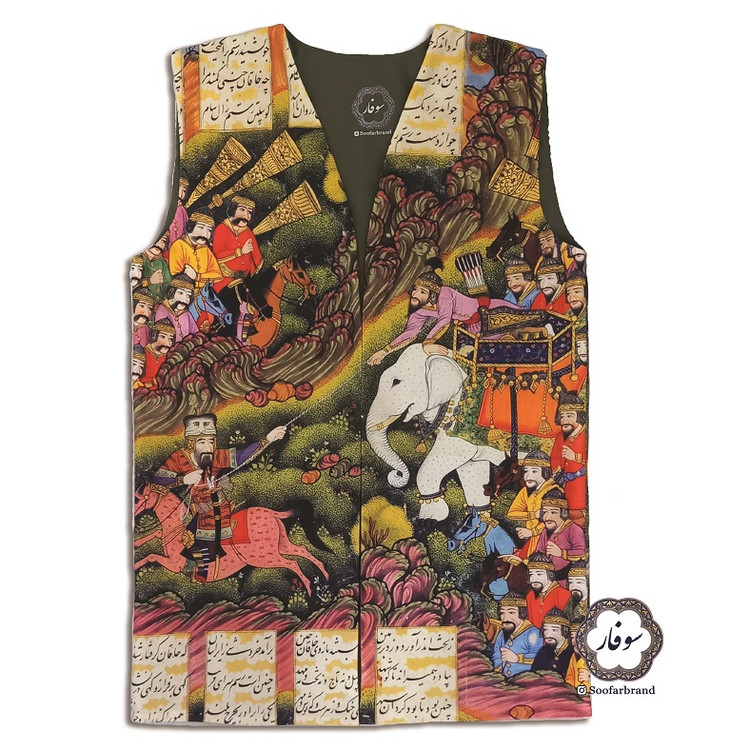 جلیقه طرحی شده اختصاصی مجموعه سوفار و جنس آن مخمل ظریف با بالاترین کیفیت چاپ می باشد.